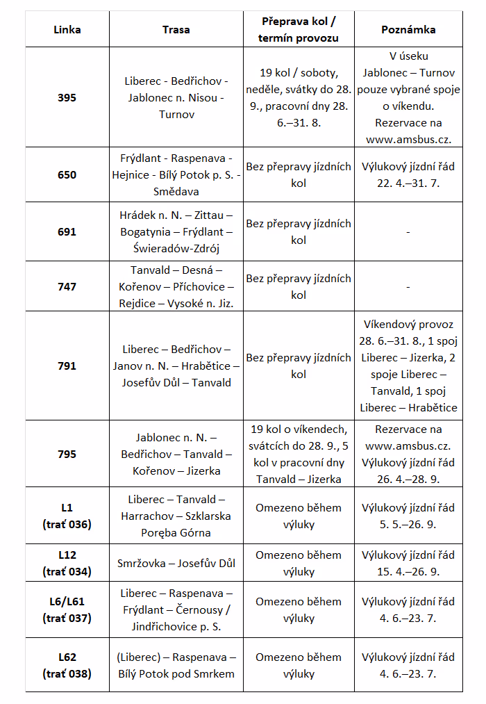 Sezónní turistické linky jsou opět v provozu a nabídnou pohodlné spojení do nejatraktivnějších míst Jizerských hor. Využít můžete i spoje s přepravou jízdních kol, které vás dopraví třeba až na Jizerku nebo k přehradám.